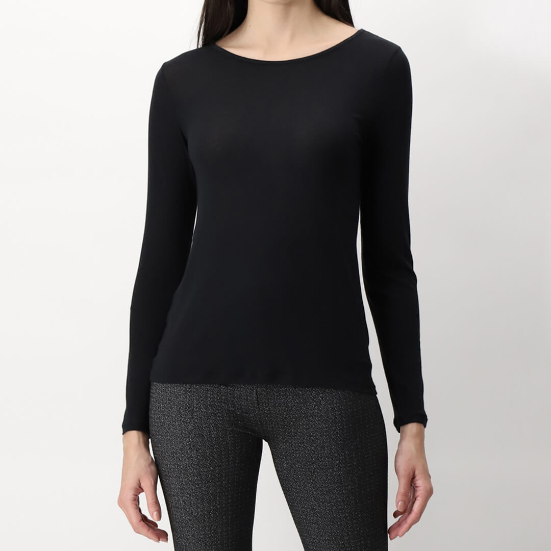 Oroblu – Perfect Line Cashmere Blend Long Sleeved T-Shirts (black & beige)